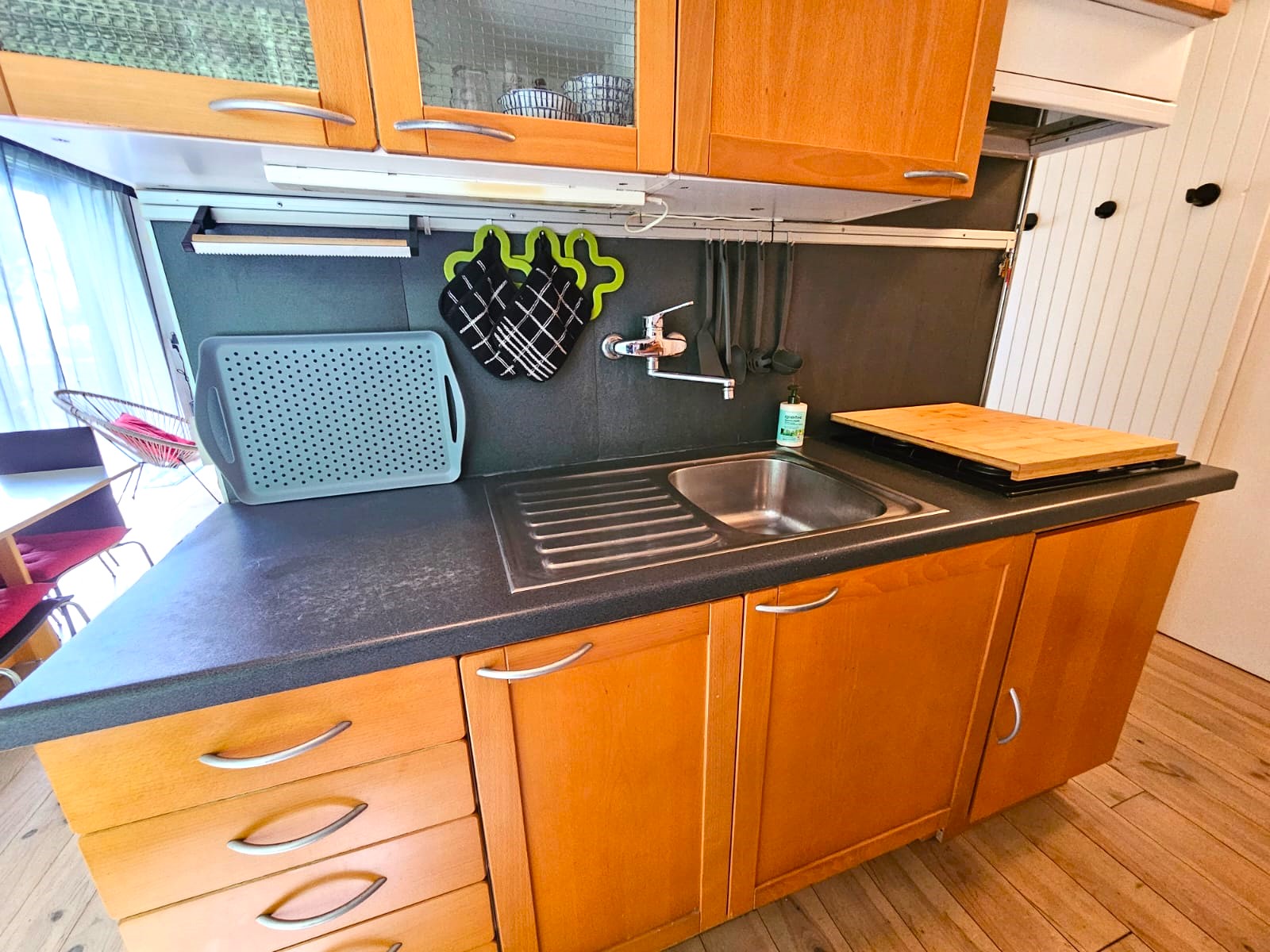 Volledig ingerichte keuken met een 4 pits gasstel, afzuigkap, waterkoker, koffiemachines (Nespresso & Lavazza), combimagnetron, koelkast met vriesvak inclusief alle kookbenodigdheden.